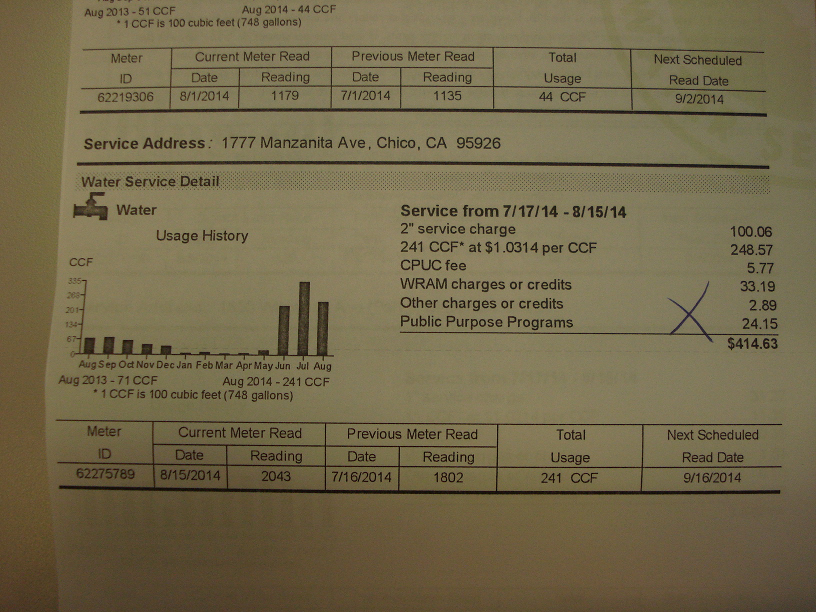 Wait a minute – here’s the other half of that bill – over $1200/month to shower a bunch of guys who might put out a fire once a week?