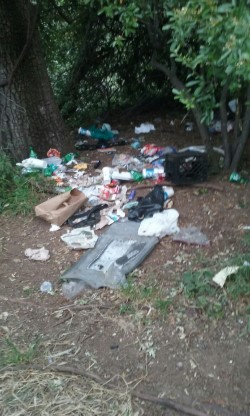 Drive by One Mile, take Vallombrosa toward the Downtown area – look at the “weeds, rubbish, and debris” – and then there’s the bums! One guy looked like a pile of garbage, but as we drove by he sat up. Another man stood astraddle the sidewalk, blocking passersby, going through his shopping cart full of crap.