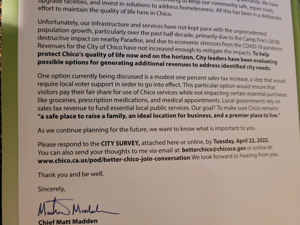 On another note, here’s just one letter that shows how little Chicoans know about districting.